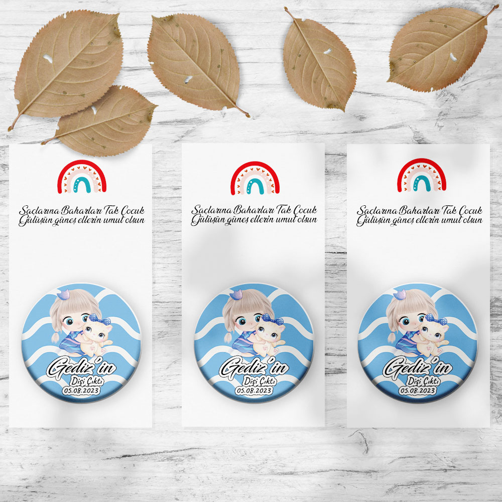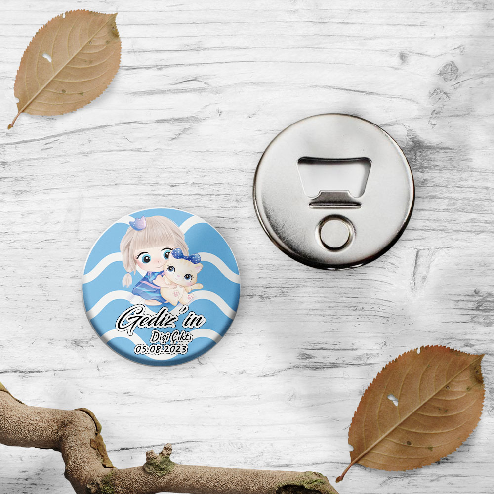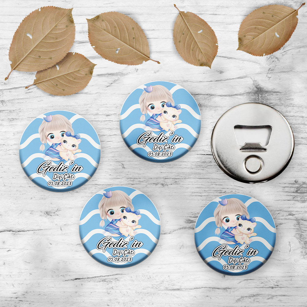 Kedi Seven Mavi Elbiseli Kız Diş Magnetleri Buton Açacak